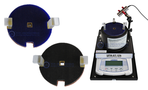吸收孔徑(掩模)位于治療頭和輻射力天平的靶(采用凸形圓錐反射靶)之間,孔徑是聲學吸收材料上切割出的圓洞,其放置在治療頭的前面有選擇地減小治療頭的有效輻射表面,導致用輻射力天平測量的功率也減小。通過使用一系列的孔徑來遮擋超聲波束的面積,就能夠采樣發(fā)射功率的空間分布。結合數(shù)據(jù)分析方法,測量的目的在于計算對應于發(fā)射大部分功率多對應的面積,然后導出有效輻射面積或AER的數(shù)值。深圳一測醫(yī)療采用1cm2的孔徑掩模(YM-1)及超聲功率計(UPM-DT-1PA)進行測試。